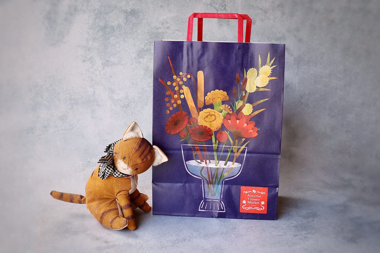 「Aoyama Flower Market AFMAC アートコンペ 2025 AUTUMN」にて "最優秀賞" をいただけました! 秋を主役とする花々の個性が一つひとつ際立つよう、形のデフォルメに工夫を凝らしながら制作しました。 他の季節に比べて、秋の花々には重厚でリッチな印象があると感じており、それらの魅力をいかにシンプルな図形と色で表現するかを試行錯誤しました。 本社にて、イラストコンテストの表彰式を開催していただきました。 社内はグリーンにあふれ、自然を感じられるライティングや床材に至るまで細部にこだわりが感じられ、感動しました。 お話を伺う中で、その一つ一つに込められた信念や想いの強さに、胸が高鳴りました。 私ももっと頑張りたい、そう心から思える貴重な機会となりました。 さらに、花束は私のイラストのイメージに合わせて制作してくださり、その心遣いに心が熱くなりました! 2025年秋のショッピングバックなどに使用展開していただいております。