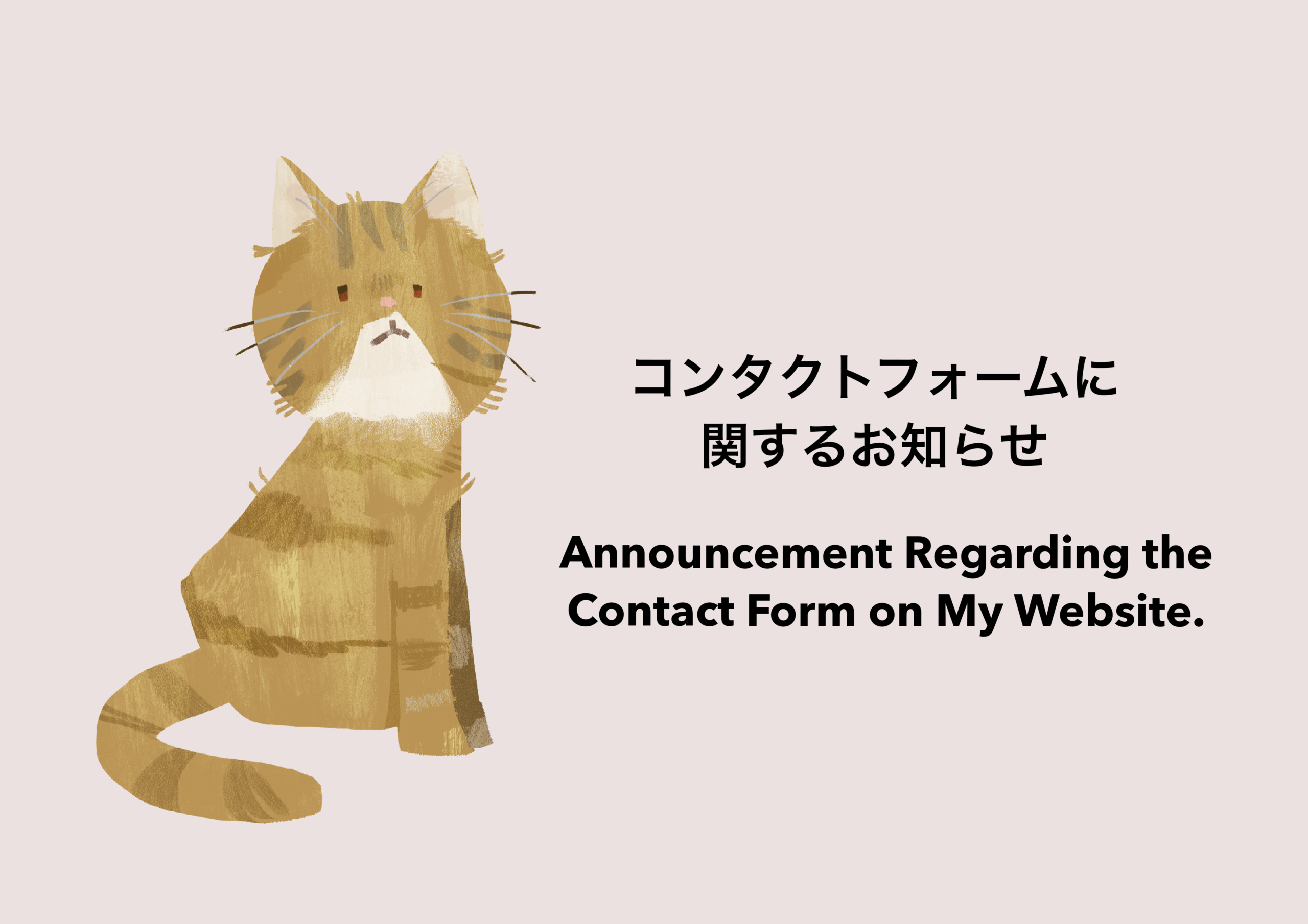 コンタクトフォームに一部不具合があり、正常に送信できない場合がございました。 現在は問題なくご利用いただけます。ご不便をおかけし、申し訳ございません。 It was recently discovered that the contact form on my website wasn’t working properly in certain environments. The issue has now been fixed, and you can once again send messages without any problems. I sincerely apologize for any inconvenience this may have caused and appreciate your understanding.